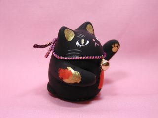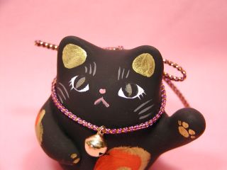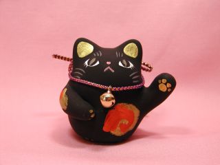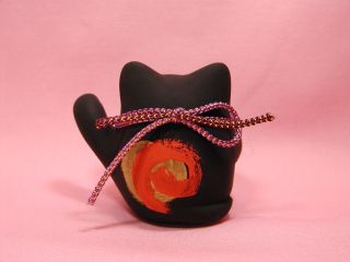 「なつめみちこさん」のネコさん 2005年1月、東京立川「グランデュオ立川」で開催された 「新春開運招福 福ねこ屋」から連れ帰ったネコさんです。 おめでたい金色と赤で飾られた黒猫さん。 お目目ぱっちり、きりりとした表情が「今年も1年がんばるぞ〜!」 という雰囲気です。
