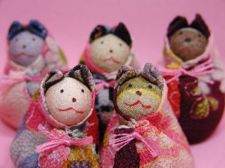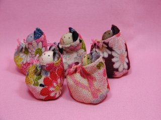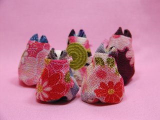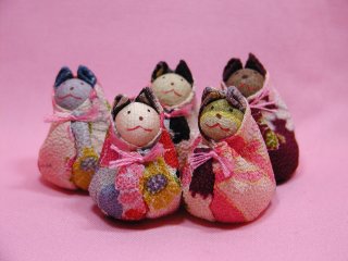 「曲沼らん子さん」のネコさん 2005年2月に東京谷中「ギャラリー猫町」で開催された 「猫のちいさなおひなさま展」から連れ帰ったネコさんです。 和布でくるまれた小さな猫玉。お手玉のようになっています。
