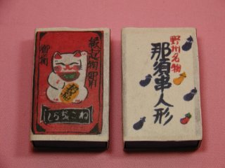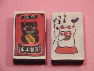 「戸村裕さん」のネコさん 2005年2月に東京谷中「ギャラリー猫町」で開催された 民芸作家「那須串人形」の戸村さんの個展「本日ねこ晴れ」から連れ帰ったネコさんです。 戸村さん手作りのガラポン玉がコロンと出てくるガラポンの景品のマッチ。 いろいろな種類のネコさんがあって悩みましたぁ〜(=^m^=)