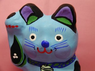 「招き猫本舗 五十嵐さん」のネコさん 色鮮やかな絵付けが特徴的な春日部張り子の招き猫さん。 春日部張り子は埼玉県春日部市の伝統工芸品です。