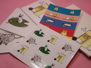 「梶原美穂さん」のネコさん 猫さんたちの楽しいイラストが描かれた一筆箋、シールなどなど。 猫好きさんへちょっとしたメッセージを送るのに最適(*^_^*)