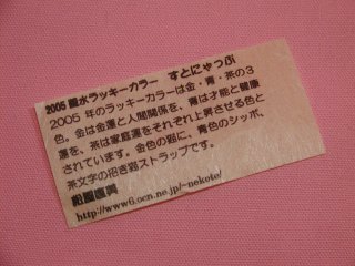 「松風直美さん」のネコさん 2005年3月に東京谷中ギャラリー猫町で開催された松風さんの個展 「ネコのニチジョウ」から連れ帰ったネコさんです。 2005年のラッキーカラー金色のすとにゃっぷ。 キリッとしたお顔付きもグゥ〜(*^^)v
