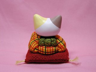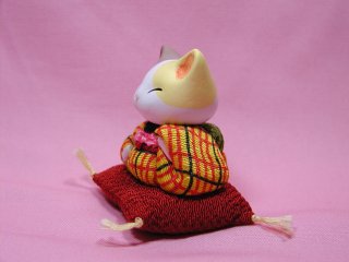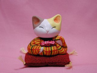 「おおやぎえいこさん」のネコさん 「にゃーにゃー村」村長さん、おおやぎえいこさんのネコさんです。 町娘風のお着物を着たかわい〜い三毛猫さん。 どこから見ても丁寧な創り。 細部すみずみまで細やかな気配りが感じられるネコさんです。