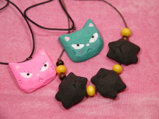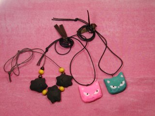 「松風直美さん」のネコさん 2005年5月に滋賀県東近江市ことうヘムスロイド村で開催された 「ART GALLERY ヘムスロイド2005」から連れ帰ったねこさんです。 ねこさんのペンダント。これは、なかなか目立ちますな(=^m^=)