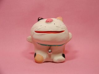 「深井和子さん」のネコさん 2005年8月に愛知県瀬戸市で開催された「招き猫まつり」から連れ帰ったねこさんです。 招き猫100人展出展作家さんのねこさん勢揃いの「招き猫アートマーケット」。 とぼけたお顔のねこさんに一目惚れ(=^m^=)も〜何度見てもサイコ〜ッ!