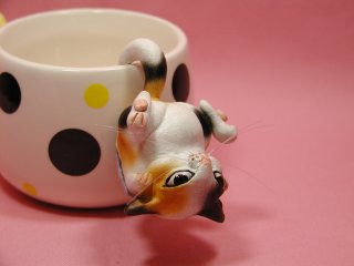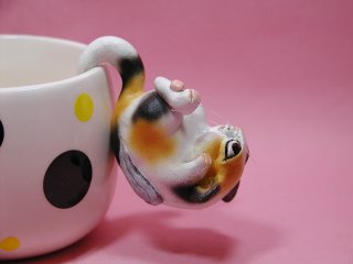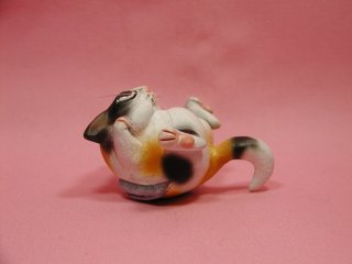 「鎌田光司」さんのネコさん 2005年8月に東京高円寺「猫の額」で開催された「化け猫展」から連れ帰ったねこさんです。 しっぽが引っかけられるようになっていて基本的にはお顔が下。 背中にはかわいい羽が生えてます。猫天使?