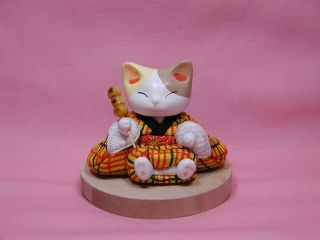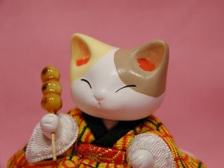 「おおやぎえいこ」さんのネコさん 2005年9月に東京高円寺「猫の額」で開催された、おおやぎえいこさんの個展 「にゃーにゃー村便り」から連れ帰ったねこさんです。 みたらしだんごを持ったねこさん。個展会場では、おおやぎさんから、 いろいろな制作秘話(=^m^=)を聞けて、とても楽しかったです。