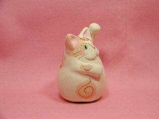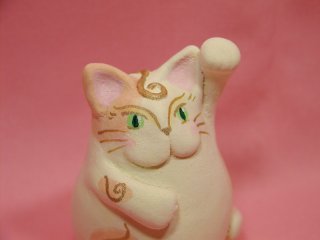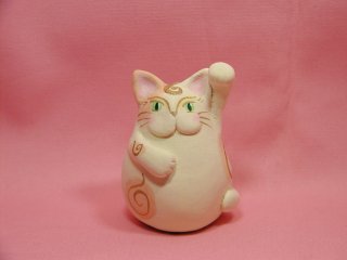 「己夢」さんのネコさん 2005年9月に東京高円寺「猫の額」で開催された己夢さんの 個展「猫の髭流星群」から連れ帰ったねこさんです。 お馴染みのほっそりねこさんとは違いぷっくり系のねこさん。 土鈴になっていて、カラカラカラと良い音がします。