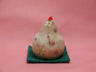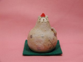 「櫻井魔巳子」さんのネコさん 2005年12月に東京谷中「ギャラリー猫町」で開催された 「ふくふく冬猫雑貨店」から連れ帰ったねこさんです。 ちょっこっと小さな手で一応(=^m^=)招いてます。 小さな赤い帽子もポイント。ふわぁ〜っとした優しいなお顔付きもグゥ〜(*^^)v