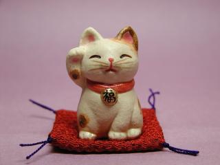 「山崎清孝さん」のネコさん 福々しい優しいお顔付きのネコさん。思わず手にとってみたくなってしまうような 暖かい感じがします。プクプクのほっぺが印象的(o^^o) 鳥や動物達をモチ〜フに心が和む物作りを心がけていらっしゃる 「クラフト悠季」のクラフト作家山崎さんのネコさんです。