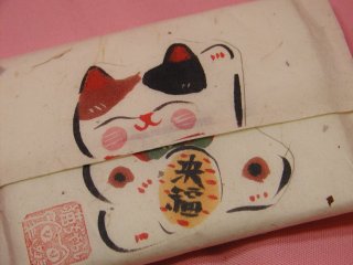 「戸村裕」さんのネコさん 2006年1月に東京谷中「ギャラリー猫町」で開催された 戸村裕さんの個展「新春ねこまみれ」から連れ帰ったねこさんです。 ガラポンのくじ引きでゲットした招き猫さんのポケットテッシュ。 新春最初の運試しは4等賞でした(=^m^=)