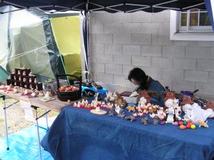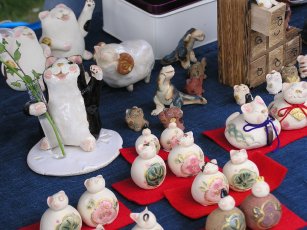 「服部京子」さんのネコさん 2006年5月に滋賀県で開催された「ARTGALLARYヘムスロイド2006」から 連れ帰ったねこさんです。「猫の集会」のねこロトの景品のねこさん。 ヘムスロイド村祭り1日目はもの凄い風で、服部さんのお店が飛ばされそうになる(>_<)ゞ アクシデントもありましたが、場所をお引っ越ししてお店続行。 ねこさん達も安心して並んでいました。