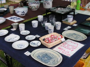 ヘムスロイド村祭りでのお店風景。 2006年も賑わいました「猫の集会」にゃんロト抽選会場もねこてさんのお店。