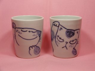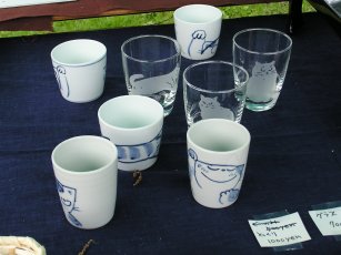 「松風直美」さんのネコさん 2006年5月に滋賀県で開催された「ARTGALLARYヘムスロイド2006」から 連れ帰ったねこさんです。残り福?(=^m^=)のねこさんの湯飲み。 ほのぼの顔のねこさんと、キリリ顔のねこさん。