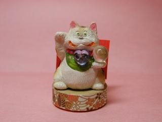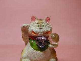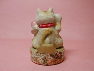 「播和比古さん」のネコさん このお顔の表情に惹かれて連れ帰ったネコさん。 うっしっし・・・と、一癖ありそうな感じがなんとも言えません(*^m^*) ぷっくりした体つきもねこ丼好み。後ろにはカ〜ドが立てられるよう カ〜ドスタンドになっています。