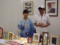 平成の招き猫100人展アートマーケットでの出展風景。 左が、ねこてさんこと松風さん。おとなりは。。。?(=^m^=)