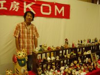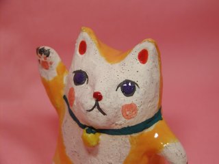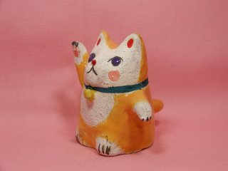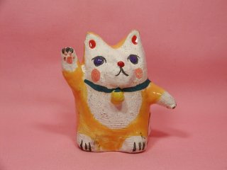 「小室幸雄」さんのネコさん 2006年9月に開催された「第11回来る福招き猫まつりin瀬戸」。 瀬戸の文化センターで開催された「平成の招き猫100人展アートマーケット」から 綺麗な黄色の招き猫さん。アートマーケットのために創った出来たてホヤホヤだそうです。