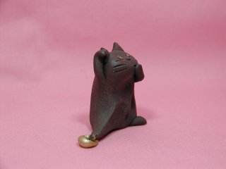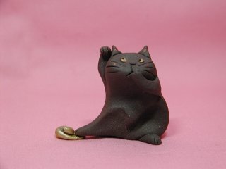 「半澤淳子」さんのネコさん 2006年9月に伊勢で開催された「来る福招き猫まつり」の「招き猫現代作家展」から 連れ帰ったねこさんです。 運がつくようにとウン○を踏んでいる招き猫さん(=^m^=) 見ない振りして?足をのばしてちょっと踏んでいるとこがグゥ〜ッ!