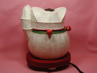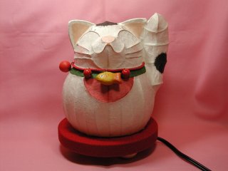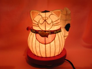 「天野千恵美」さんのネコさん 2006年11月に東京・谷中にある「ギャラリー猫町」で開催された EMYさんこと天野千恵美さんの個展「野之猫」から連れ帰ったねこさんです。 和紙でできた招き猫さんのランプ。ほのかな明かりですっごく良い雰囲気。