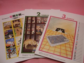 「梶原美穂」さんのネコさん 2006年11月に東京・高円寺にある「ギャラリー猫の額」で開催された キャットキッカー2号さんこと梶原美穂さんの個展「花畑麦畑」から連れ帰ったねこさんです。 毎年愛用させてもらっているカレンダー花暦麦暦の2007年度版。 使い終わった月はポストカードになる優れもの(=^m^=)
