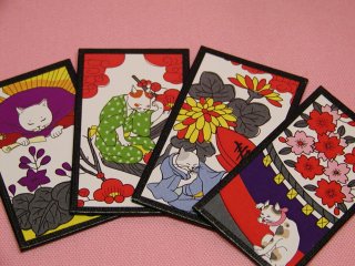 「元祖ふとねこ堂」さんのネコさん 2006年11月に東京・谷中にある「ギャラリー猫町」で開催された 元祖ふとねこ堂さんの個展「猫の遊び展」から連れ帰ったねこさんです。 お馴染み花札の猪鹿蝶がすべて粋なねこさんになっています。絶品っ! ねこ丼家は毎年お正月には花札楽しんでたなぁ〜。パチンッてね(=^m^=)