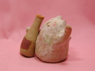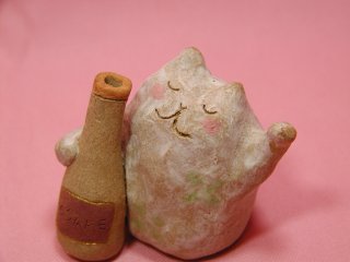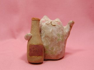 「青木あかね」さんのネコさん 2006年12月に神奈川県横浜にある赤れんが倉庫で開催された 「第6回あ〜てぃすとマーケット」から連れ帰ったねこさんです。 このふわふわ感がたまらない(=^m^=)あかねさんのねこさん。 何だかふわぁ〜って浮かんじゃうような感じでしょ。今回はお酒付き。