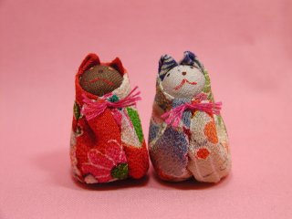 「曲沼らん子」さんのネコさん 2007年3月に東京・谷中のギャラリー猫町で開催された曲沼らん子さんの個展 「猫日和」から連れ帰ったねこさんです。 出会うたびに連れ帰ってしまう猫玉のねこさん。なんと10匹になりました(=^m^=) 今回は春っぽい感じのお着物を着たねこさんを選んでみました。