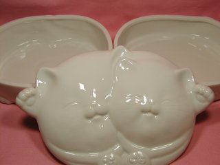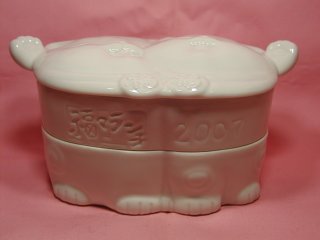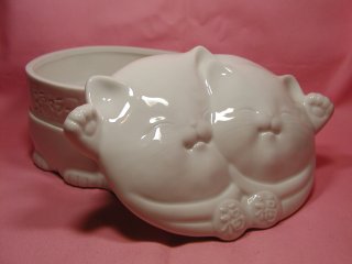 「山崎清孝」さんのネコさん 2007年9月に愛知県瀬戸で開催された「来る福招き猫まつり」から 連れ帰った猫さんです。 毎年、招き猫まつりで振る舞われる招き猫ランチの特製お弁当箱。 2007年は瀬戸在住の作家さん山崎清孝さん作。 ぷっくりした猫さんが印象的なお弁当箱です。