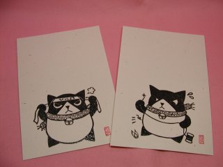 「萩工房」さんのネコさん 2007年10月に開催された横浜アート縁日から連れ帰ったねこさんです。 萩工房さんの悪顔ねこさんの絵はがき。
