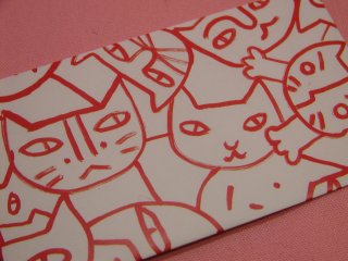 「櫻井魔巳子」さんのネコさん 2007年11月にギャラリー猫町で開催された「猫のぽちぶくろ展」から 連れ帰ったねこさんです。個性的なねこさんのぽち袋です。