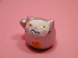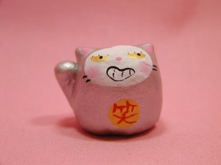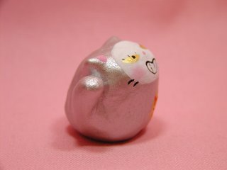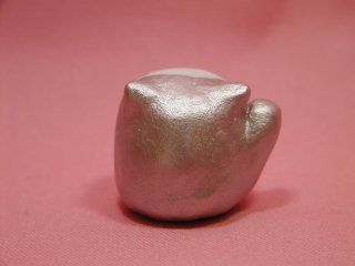 「松風直美」さんのネコさん 2007年12月に東京谷中ギャラリー猫町で開催された 「猫の小さな贈りもの飾りもの展」から連れ帰ったねこさんです。 銀色に輝く小まめ福ちゃん。金運をさらにアップしてくれるそうです。