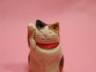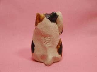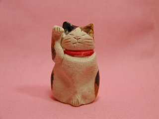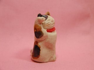 「水谷満」さんのネコさん 2008年2月に東京谷中ギャラリー猫町で開催された水谷さんの個展 「幸と笑いと楽園と。。。」から連れ帰ったねこさんです。 手びねりで創られた焼き物の招き猫さん。 背筋をピンと伸ばしてキリッとしたお顔付き。しっかり福招きに勤めますって感じ。