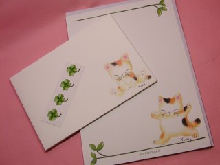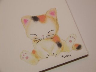「やまねみえこ」さんのネコさん 東京・西荻窪のギャラリーで開催されていた展示会から連れ帰ったねこさんです。 ぽわ〜んとした優しいタッチのねこさんのレターセット。 木製のウェルカムボードのねこさんや粘土製のねこさんなどもいました。