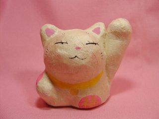 「松風直美」さんのネコさん 2008年5月に滋賀県東近江で開催された「ARTGALLARYヘムスロイド2008」から 連れ帰ったねこさんです。かわいいピンクブチの招き猫さん。 この目つきがたまりませ〜ん(≧∇≦)