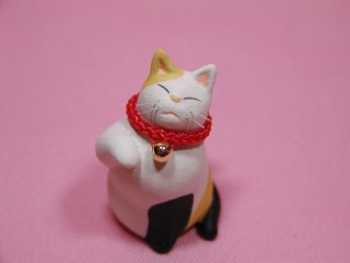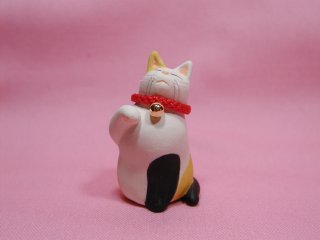 「梅若順子」さんのネコさん 東京・高円寺にある猫専門ギャラリー「猫の額」から連れ帰ったねこさんです。 スッとしたお姿の右手上げの招き猫さん。