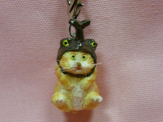「播和比古」さんのネコさん 2008年9月に愛知県瀬戸で開催された「来る福招き猫まつり」から連れ帰った はりまるさんこと播和比古さんのねこさんです。 カブトムシのかぶりものをかぶったねこさん。クワガタもありました(=^m^=)