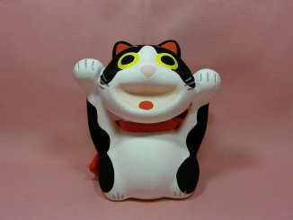 「田中さとる」さんのネコさん 2008年9月に愛知県瀬戸で開催された「来る福招き猫まつり」から連れ帰ったねこさんです。 お目目ぱっちりのはちわれねこさん。