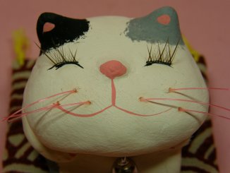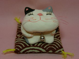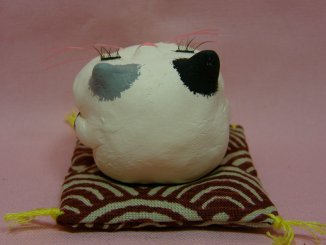 「深井和子」さんのネコさん 2008年9月に愛知県瀬戸で開催された「来る福招き猫まつり」から連れ帰ったねこさんです。 長〜いまつげがポイントのお座りねこさんです。この表情がたまりませんっ(=^m^=)