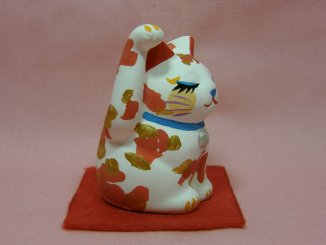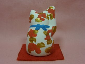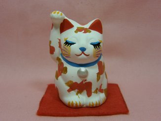 「安江美佳」さんのネコさん 2008年9月に愛知県瀬戸で開催された「来る福招き猫まつり」から連れ帰ったねこさんです。 綺麗な絵付けの招き猫さん。