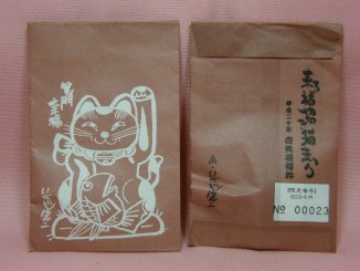 「五十嵐健二」さんのネコさん 2008年9月に三重県伊勢で開催された「来る福招き猫まつり」から連れ帰ったねこさんです。 毎年9月29日に授与される「吉兆招福鈴」。 2008年は「春日部張り子」の五十嵐健二さんデザインのポチ袋でした。