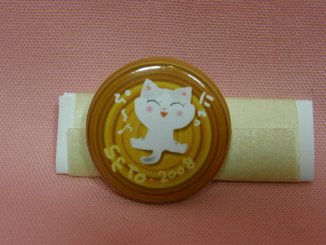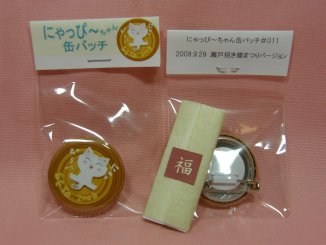 「松風直美」さんのネコさん 2008年9月に愛知県瀬戸で開催された「来る福招き猫まつり」から連れ帰ったねこさんです。 にゃっぴ〜ちゃん缶バッチの瀬戸招き猫まつりバージョン。