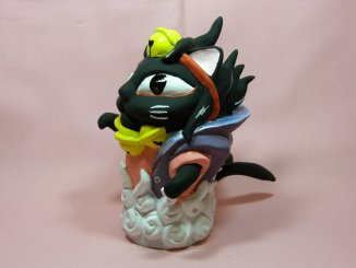 「菊池義信」さんのネコさん 2008年9月に神奈川県横浜で開催された「横浜アート縁日」から連れ帰ったねこさんです。 ちょっとインパクトあったので連れ帰りました(=^m^=)