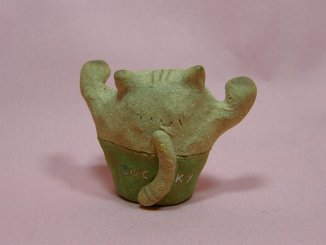 「青木あかね」さんのネコさん 2008年9月に神奈川県横浜で開催された「横浜アート縁日」から連れ帰ったねこさんです。 招いてる?ボディービルねこさん?(=^m^=)