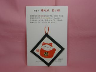 「松風直美」さんのネコさん 2008年12月に東京品川のecute 品川で開催された「新春開運招福 福ねこ屋」 から連れ帰ったねこさんです。だるま招き猫さんの縁起札。 今年も楽しい年になりそうです。