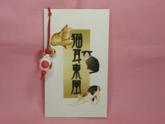 「天野千恵美」さんのネコさん 2008年12月に東京谷中のギャラリー猫町で開催された「猫のぽち袋・手ぬぐい展」 から連れ帰ったねこさんです。小さいだるま猫さん付きのポチ袋。 「馬耳東風」って人の意見を聞かないってことですよね? 「猫耳東風」は猫さんは自由ってことかな?