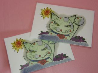 「深井和子」さんのネコさん 2008年12月に東京谷中のギャラリー猫町で開催された「猫のぽち袋・手ぬぐい展」 から連れ帰ったねこさんです。妖艶なねこさんのポチ袋。 この目つき大好きです(=^m^=)