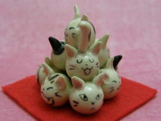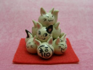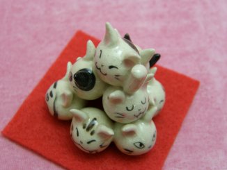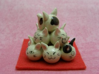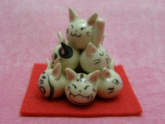 「工房猫月 小川美由紀」さんのネコさん 2009年5月に滋賀県彦根で開催された「アートギャラリーヘムスロイド2009」から 連れ帰ったねこさんです。工房猫月ご姉妹の妹さん小川美由紀さんの猫だんご。 ミニサイズからデカサイズまであって、かなり笑えました(=^m^=) 猫さんごとに表情が違っていて、どの角度から見ても楽しめます。
