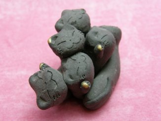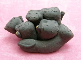 「工房猫月 高橋奈美」さんのネコさん 2009年5月に滋賀県彦根で開催された「アートギャラリーヘムスロイド2009」から 連れ帰ったねこさんです。工房猫月ご姉妹の高橋奈美さんのねこさん。 つちのこみたいなねこさんたちのかたまり(=^m^=)ねこ丼のツボにハマりました。