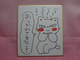 「松風直美」さんのネコさん 2009年5月に滋賀県彦根で開催された「アートギャラリーヘムスロイド2009」から 連れ帰ったねこさんです。ヘムスロイドでお世話になっている松風さんが現地で描いてくれました。 徹夜遠征でウトウトしていたねこ丼(^^ゞを見て描いて下さったねこさん。