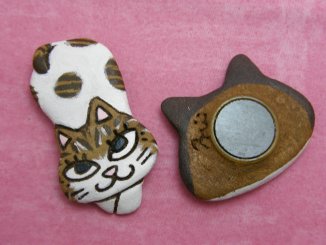 「猫丸みど」さんのネコさん 2009年8月に横浜赤レンガ倉庫で開催された「第11回あ〜てぃすとマーケット」から 連れ帰ったねこさんです。ねこさんマグネット。ちょっと大きめで存在感あります。